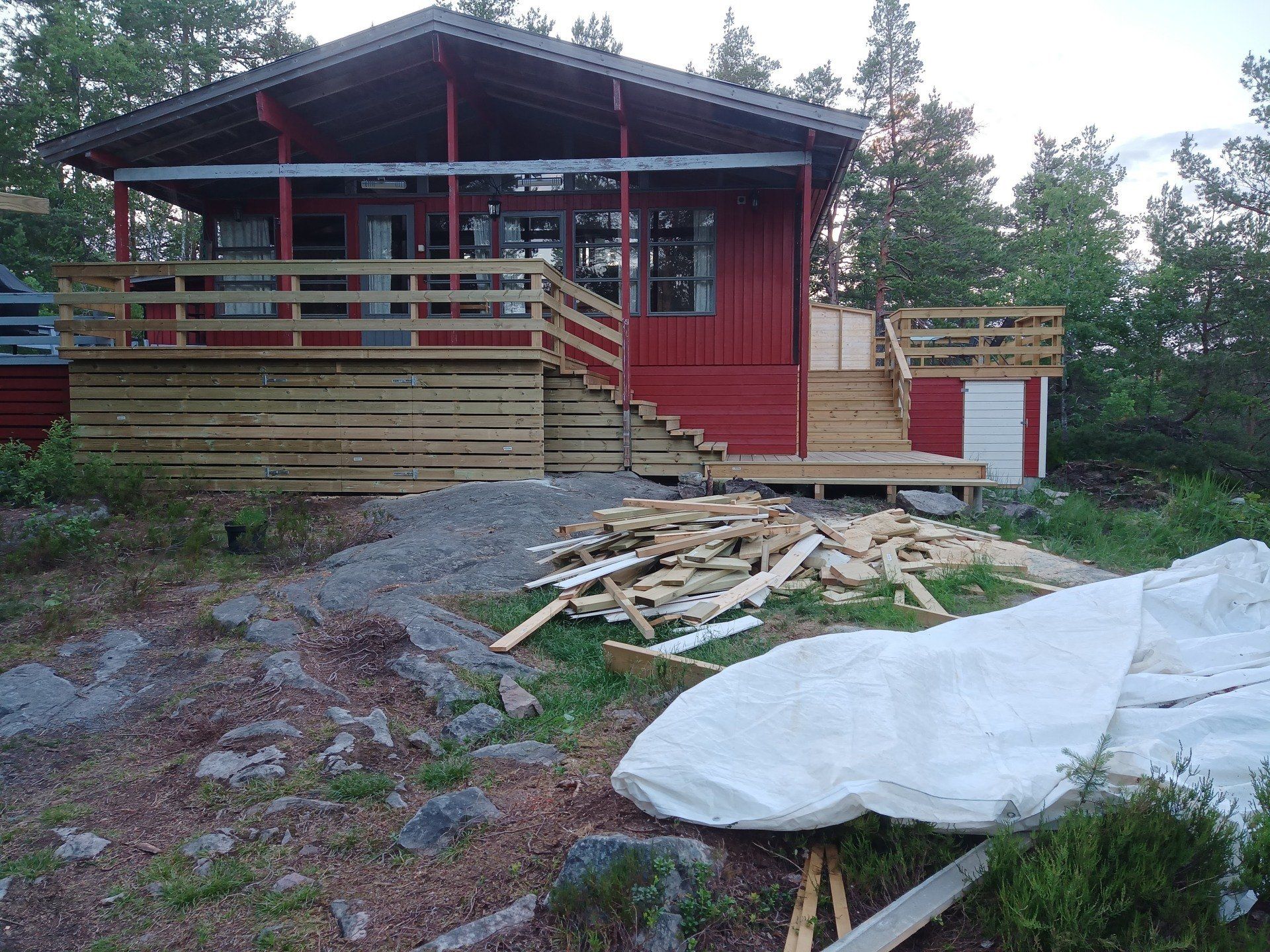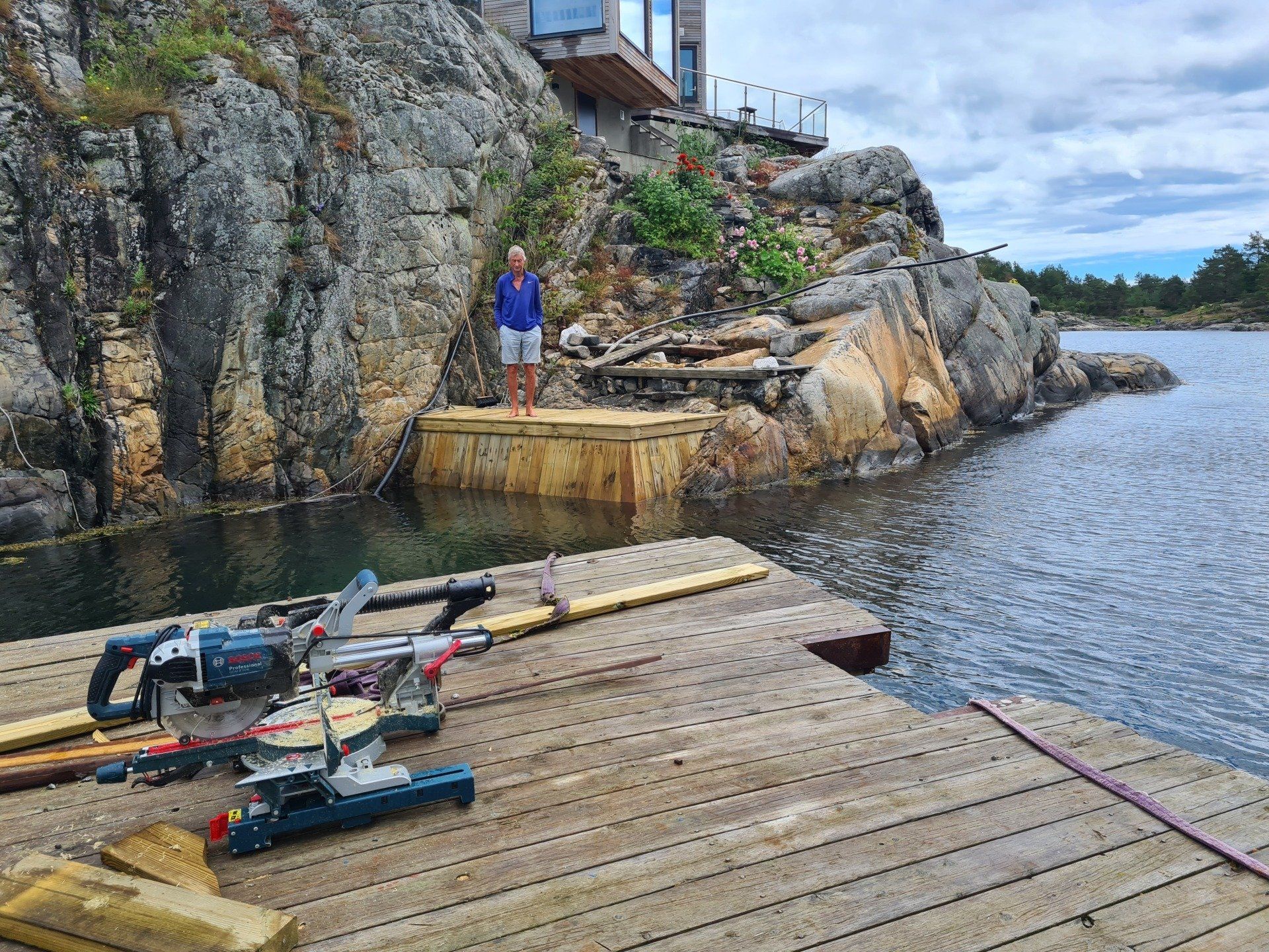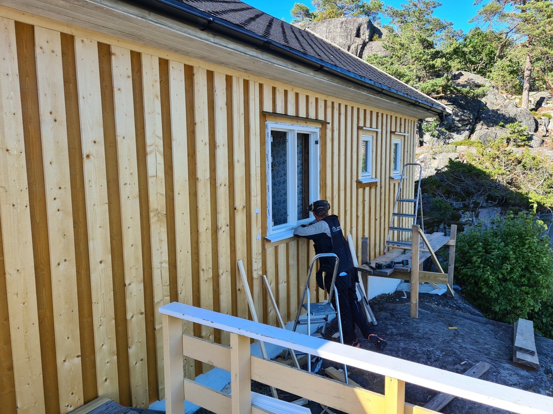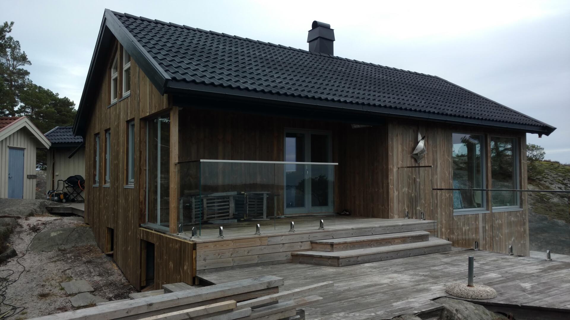 Vi jobber mye i skjærgården, både på land og ute på øyene med fritidsboliger. Vi har flere større prosjekter, og noen mindre.